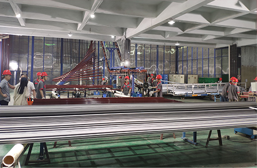 ??公司主要生產設備包含鋁型材擠壓生產線10套,立式粉末噴涂線2套,臥式粉末噴涂生產線1套,臥式氧化電泳生產線1套,真空木紋生產線4套,及相關配套生產設備10多套,其中進口先進設備2套,國內技術領先設備20多套,年生產各型鋁材可超5萬噸。